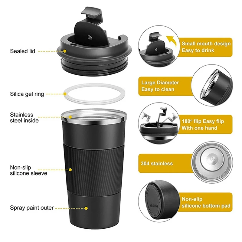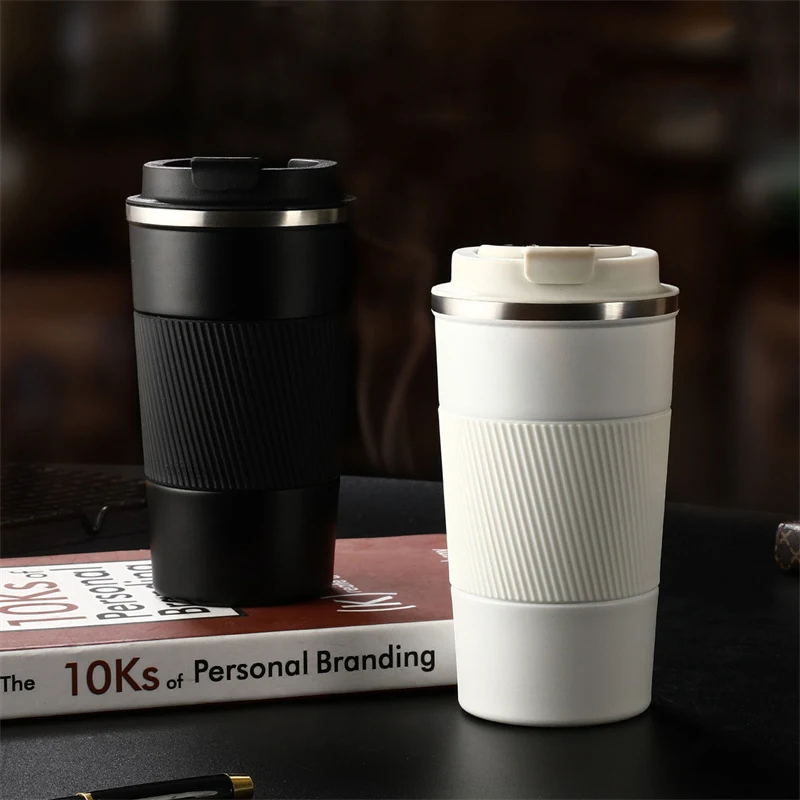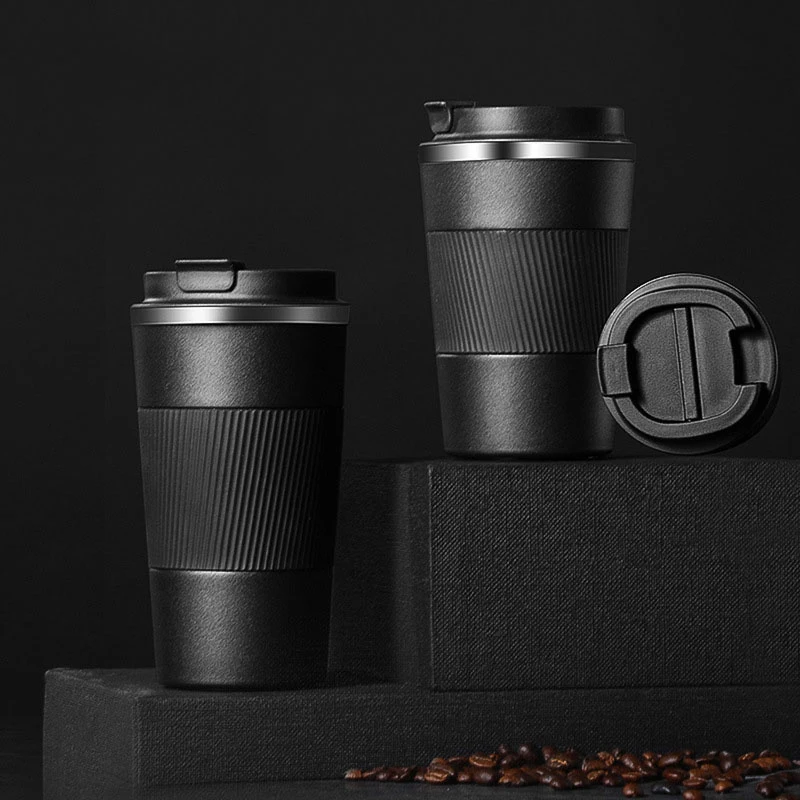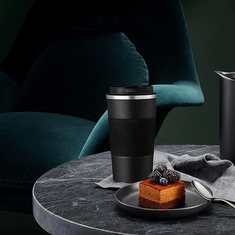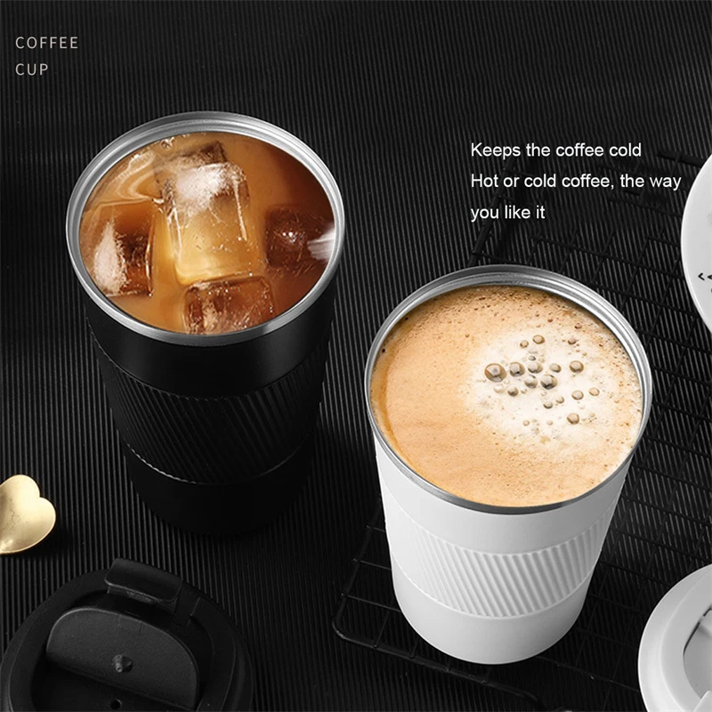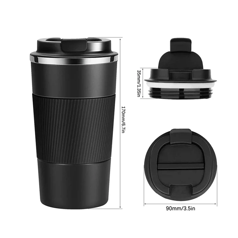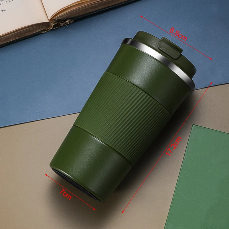 Copo Térmico Inoxidável 380ml/510ml 🥤 Antiderrapante | Mantém Bebidas Quentes/ Frias • Garrafa Térmica de Viagem para Café, Chá e Carro